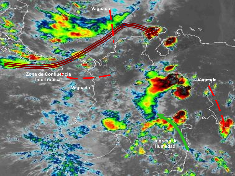 El ramal Pacífico de la Zona de Confluencia Intertropical en interacción con una Vaguada, algunos efectos generados por el Huracán MELISSA, así como procesos convectivos locales favorecen condiciones inestables, que generan lluvias ligeras a moderadas y algunas tormentas en sectores de los departamentos de la Guajira, Cesar, Magdalena, Atlántico, Bolívar, Santanderes, Boyacá, Cundinamarca, Eje Cafetero, Antioquia, Chocó, Valle del Cauca, Cauca, Nariño, , Amazonas, Vaupés, Guaviare, Meta, Guainía y Vichada. Precipitaciones ocasionales y lluvias de menor intensidad en los departamentos de Sucre, Córdoba, Arauca, Casanare, Putumayo, Caquetá, Tolima y Huila.