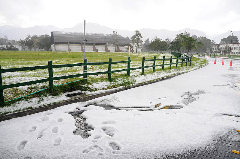 El cambio brusco del clima en Bogotá, que de un día totalmente soleado pasó a un oscuro invierno con granizada incluida, cubrió de blanco a la Ciudad Universitaria el pasado 16 de enero.