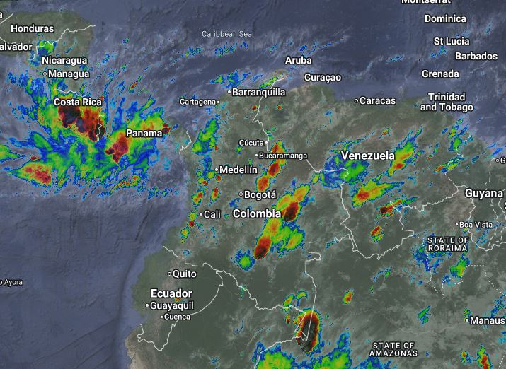 El ramal Pacífico de la Zona de Confluencia Intertropical en interacción con una Vaguada, así como procesos convectivos locales favorecen condiciones inestables, que generan lluvias ligeras a moderadas y algunas tormentas en sectores de los departamentos de Córdoba, Antioquia, Bolívar, Santanderes, Arauca, Casanare, Boyacá, Eje Cafetero, Chocó, Valle del Cauca, Cauca, Nariño, Meta, Guaviare, Vichada, Guainía, Vaupés y Amazonas. Precipitaciones ocasionales y lluvias de menor intensidad en los departamentos de Guajira, Magdalena, Cesar, Atlántico, Sucre, Cundinamarca, Tolima, Huila, Caquetá y Putumayo.