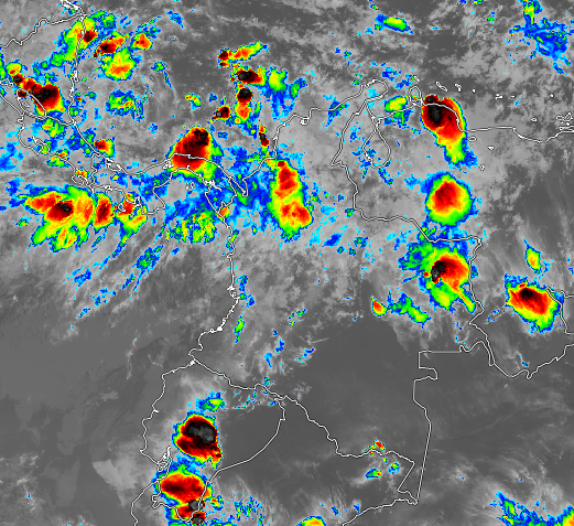 El ramal Pacífico de la Zona de Confluencia Intertropical en interacción con una Vaguada, el paso de una Onda Tropical del Este y procesos convectivos locales, favorecen condiciones inestables que generan lluvias sectorizadas a fuertes y algunas tormentas en sectores de los departamentos de Guajira, Bolívar, Sucre, Antioquia, Valle del Cauca, Cauca, Nariño, Santanderes, Boyacá, Cundinamarca, Casanare, Tolima y Huila. Precipitaciones ocasionales y lluvias de menor intensidad en los departamentos de Atlántico, Córdoba, Choco, Arauca y Vichada.