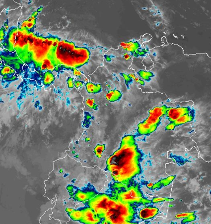 El ramal Pacífico de la Zona de Confluencia Intertropical en interacción con una Vaguada, así como procesos convectivos locales favorecen condiciones inestables, que generan lluvias ligeras a moderadas y algunas tormentas en sectores de los departamentos de Guajira, Cesar, Antioquia, Chocó, Putumayo, Caquetá, Meta, Vichada Amazonas. Precipitaciones ocasionales y lluvias de menor intensidad en los departamentos de Magdalena, Valle del Cauca, Cauca, Nariño, Los Santanderes, Boyacá, Huila, Tolima y Vaupés.
