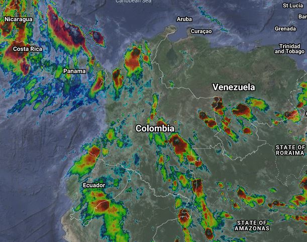 La interacción de la Zona de Confluencia Intertropical con una vaguada en el Pacifico y el paso de una Onda Tropical del Este, genera inestabilidad atmosférica en gran parte del país. Para esta noche se prevén lluvias de variada intensidad y algunas tormentas en sectores de los departamentos de Atlántico, Magdalena, Cesar, Bolívar, Sucre, Córdoba, Santanderes, Antioquia, Chocó, Valle del Cauca, Cauca, Nariño, Putumayo, Caquetá, Huila, Tolima, Eje Cafetero, Arauca, Casanare, Meta, Vichada, Guainía, Guaviare, Vaupés y Amazonas. Precipitaciones ocasionales y lluvias de menor intensidad en Boyacá y Cundinamarca.