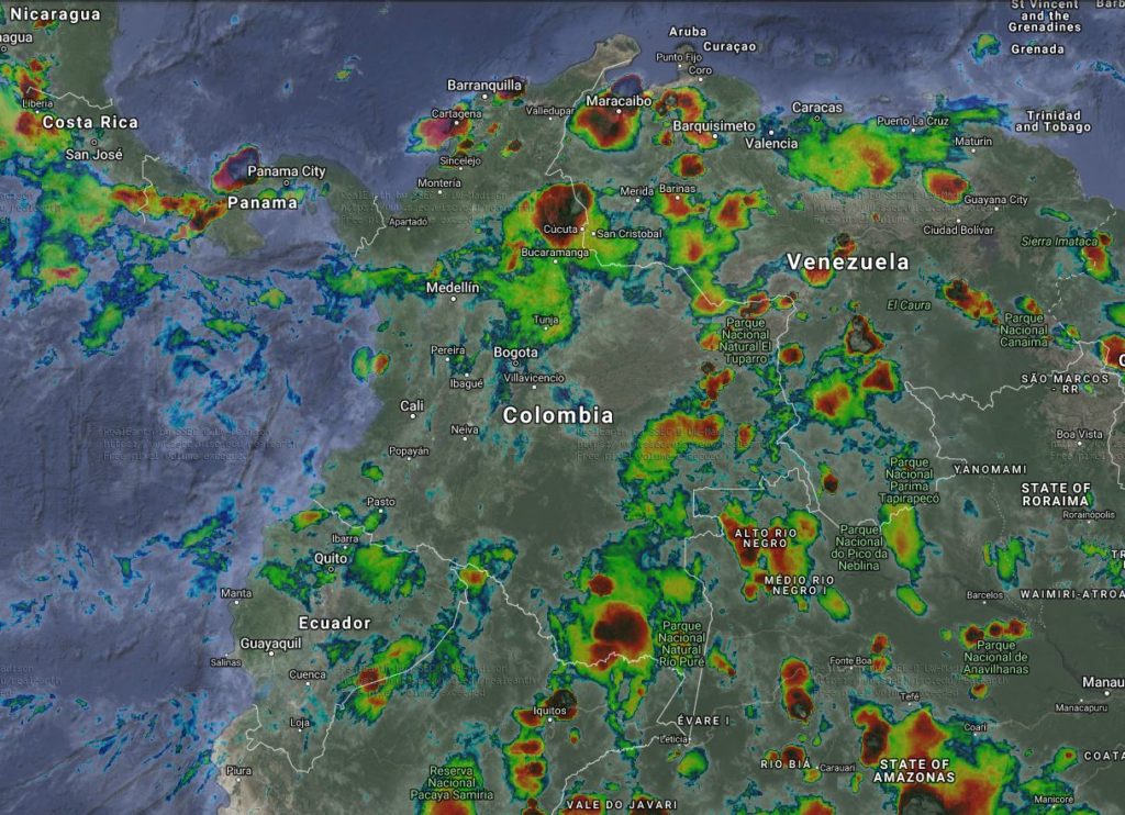 La interacción de la zona de confluencia intertropical con una vaguada y el ingreso de humedad desde el oriente, favorecen el incremento de nubosidad y lluvias de variada intensidad algunas acompañadas de actividad eléctrica, en gran parte del país. Para esta noche se prevén lluvias moderadas a fuertes en sectores de los departamentos de Norte de Santander, Santander, Cesar, Bolívar, Córdoba, Sucre, Antioquia, Chocó, Nariño y Vichada. Lluvias de menor intensidad en Magdalena, Valle del Cauca, Cauca, Putumayo, Caquetá, Guainía y Amazonas.
