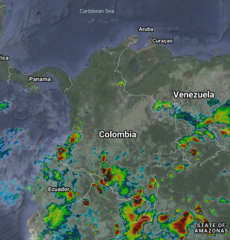 Condiciones inestables en el oriente, sur y suroccidente del país, lluvias de variada intensidad y algunas tormentas en sectores de los departamentos de principalmente en Arauca, Vichada, Guainía, Vaupés, Amazonas, Caquetá, Putumayo, Nariño, Cauca, Valle del Cauca, Chocó y Antioquia. Precipitaciones de menor intensidad en Meta. Tiempo seco para la región Caribe.