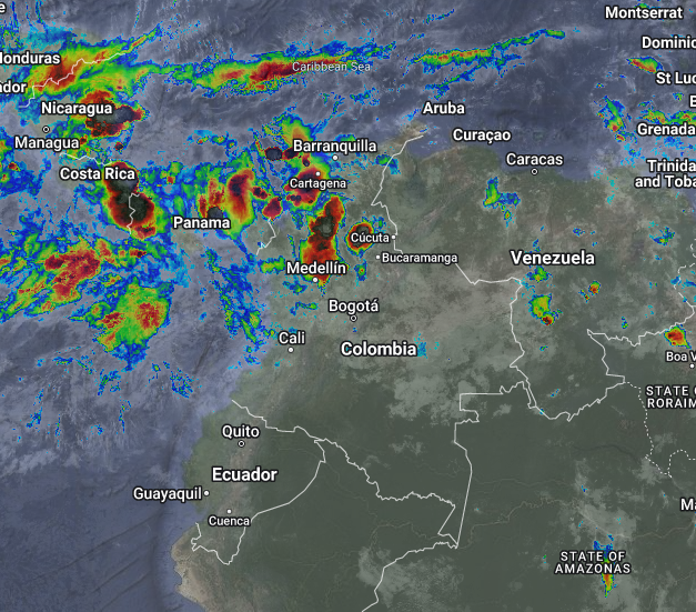 El ramal Pacífico de la Zona de Confluencia Intertropical en interacción con una Vaguada, un Sistema de Baja Presión, el ingreso de humedad por el Oriente del país, así como procesos convectivos locales favorecen condiciones inestables, que generan lluvias ligeras a moderadas y algunas tormentas en sectores de los departamentos de Atlántico, Magdalena, Cesar, Córdoba, Sucre, Bolívar, Los Santanderes, Antioquia, Chocó, Valle del Cauca, Cauca, Vaupés y Amazonas. Precipitaciones ocasionales y lluvias de menor intensidad en los departamentos de LA Guajira, Boyacá, Cundinamarca, Tolima, Huila, Guainía y Guaviare.