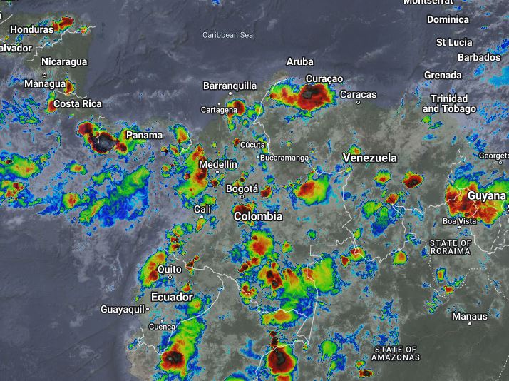 El ramal Pacífico de la Zona de Confluencia Intertropical en interacción con una Vaguada, un Sistema de Baja Presión, el ingreso de humedad por el Suroriente y Occidente del país, así como procesos convectivos locales favorecen condiciones inestables, que generan lluvias ligeras a fuertes y algunas tormentas en sectores de los departamentos de Cesar, Magdalena, Atlántico, Bolívar, Sucre, Córdoba, Santanderes, Boyacá, Antioquia, Chocó, Valle del Cauca, Cauca, Nariño, Putumayo, Caquetá, Meta, Casanare, Arauca, Vichada, Guaviare, Guainía, Vaupés y Amazonas. Precipitaciones ocasionales y lluvias de menor intensidad en los departamentos de Guajira, Eje Cafetero, Tolima y Huila.