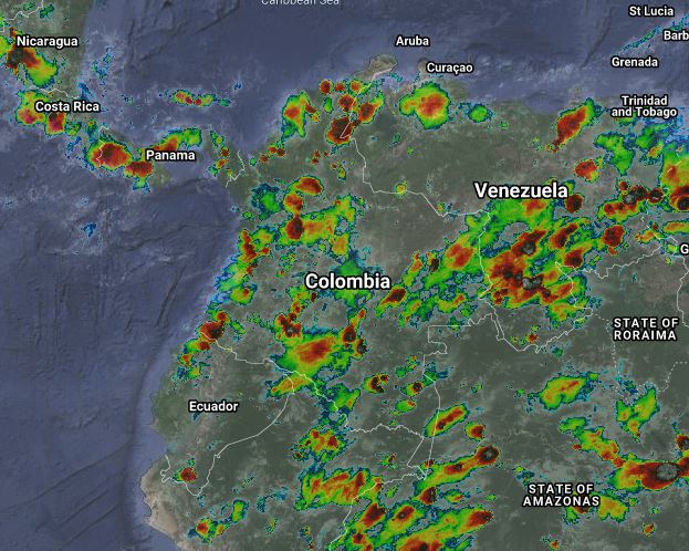 La interacción de la Zona de Confluencia Intertropical con una vaguada en el Pacífico, el ingreso de humedad por el oriente del país y procesos convectivos locales generan condiciones inestables en la mayor parte del territorio nacional, generando lluvias de variada intensidad, algunas acompañadas de actividad eléctrica, en sectores de los departamentos de Córdoba, Sucre, Bolívar, Santanderes, Antioquia, Eje Cafetero, Chocó, Valle del Cauca, Cauca, Nariño, Tolima, Meta, Cundinamarca, Boyacá, Arauca, Vichada, Guainía, Guaviare, Amazonas, Caquetá y Putumayo. Precipitaciones ocasionales y lluvias de menor intensidad en La Guajira, Casanare, Huila y Vaupés.