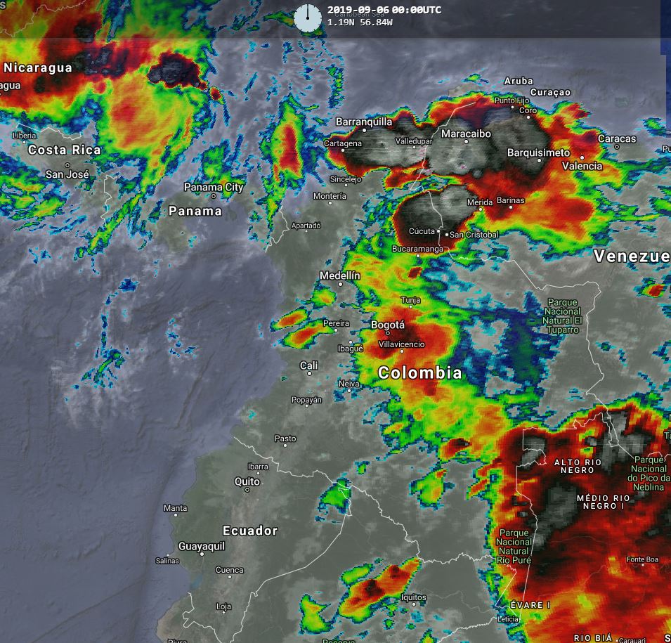 Condiciones inestables en varios sectores del territorio nacional, debido al paso de Ondas Tropicales del Este en interacción con la zona de confluencia intertropical y una vaguada, lo cual genera humedad y nubosidad produciendo lluvias de variada intensidad. Para esta noche se prevén lluvias moderadas a fuertes en los departamentos de Guajira, Cesar, Magdalena, Bolívar, Atlántico, Norte de Santander, Santander, Cundinamarca, Tolima, Guainía, Vaupés y Guaviare. Lluvias de menor intensidad en Valle del Cauca, Antioquia, Caldas, Risaralda, Quindío, Meta y Casanare.