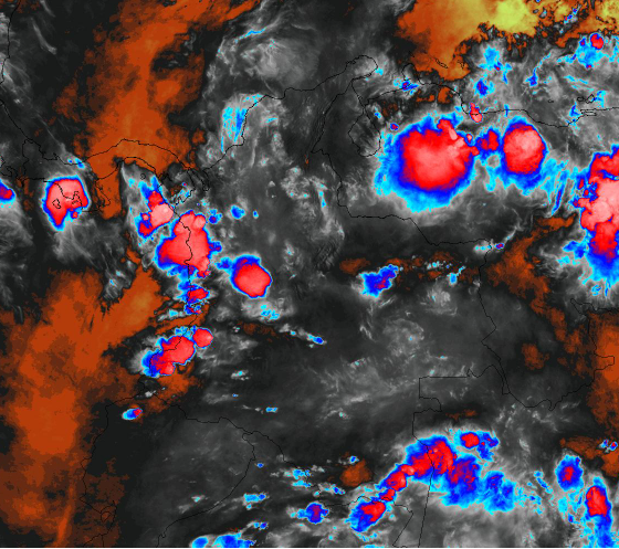 Una Vaguada en niveles bajos genera inestabilidad atmosférica en los departamentos del occidente y suroccidente del país, asimismo el ingreso de una Onda Tropical del Este, favorece el aumento de nubosidad, lluvias y algunas tormentas en las regiones de la Orinoquia, Amazonia y en el centro y oriente de la región Andina, especialmente en sectores de los departamentos de Nariño, Cauca, Valle del Cauca, Chocó, Risaralda, Caldas, Antioquia, Arauca, Casanare, Meta, Vichada, Guainía, Vaupés, Amazonas y Caquetá. Precipitaciones de menor intensidad en Córdoba, Sucre, Bolívar, Magdalena, Santander, Norte de Santander, Boyacá, Cundinamarca, Tolima, Quindío y Huila.