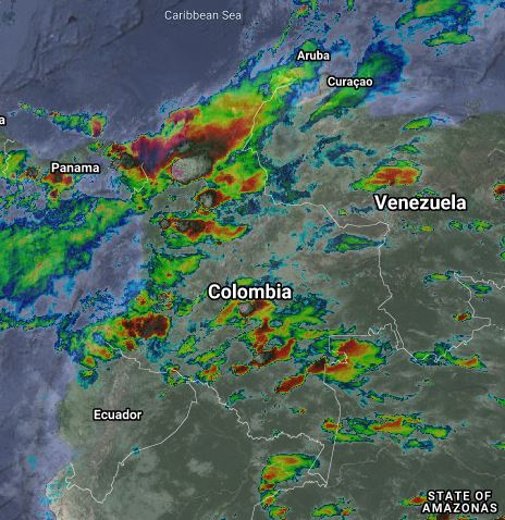 El ramal pacifico de la Zona de Confluencia Intertropical en interacción con una Vaguada, así como el paso de una Onda Tropical del Este, generan condiciones inestables en gran parte del territorio nacional. Lluvias de variada intensidad y tormentas en sectores de los departamentos de Nariño, Cauca, Valle del Cauca, Risaralda, Caldas, Quindío, Tolima, Chocó, Antioquia, Córdoba, Sucre, Bolívar, Atlántico, Magdalena, La Guajira, Cesar, Santanderes, Boyacá, Arauca, Casanare, Meta, Vichada, Guaviare, Caquetá y Vaupés. Precipitaciones ocasionales y lluvias de menor intensidad en Cundinamarca, Putumayo y Amazonas.