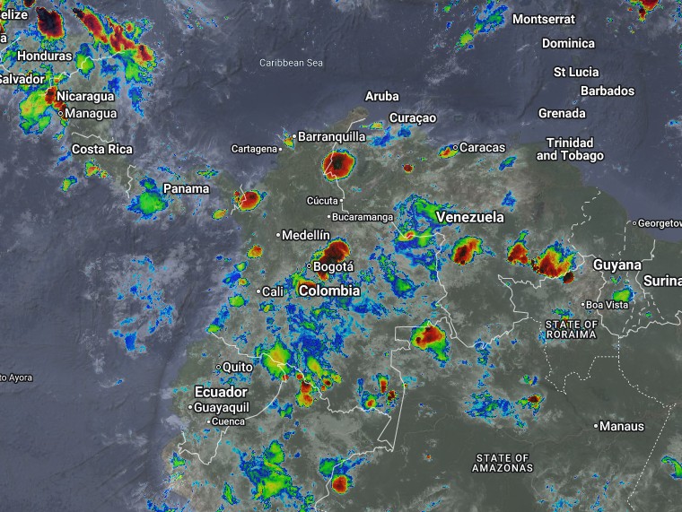 El ramal Pacífico de la Zona de Confluencia Intertropical en interacción con una Vaguada, un Sistema de Baja Presión, el ingreso de humedad por el Oriente del país, así como procesos convectivos locales favorecen condiciones inestables, que generan lluvias ligeras a moderadas y algunas tormentas en sectores de los departamentos de la Guajira, Magdalena, Cesar, Bolívar, Antioquia, Los Santanderes, Arauca, Casanare, Meta, Vaupés y Amazonas. Precipitaciones ocasionales y lluvias de menor intensidad en los departamentos Chocó, Valle del Cauca, Cauca, Nariño, Boyacá, Cundinamarca, Tolima y Huila.