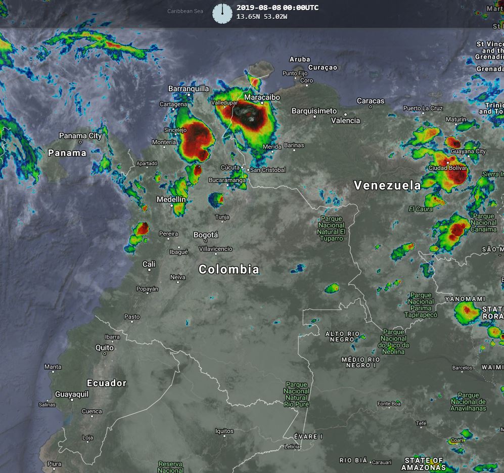 Condiciones inestables en algunos sectores del territorio nacional producto del paso de Ondas Tropicales del Este en interacción con la zona de confluencia intertropical y una vaguada, lo cual genera humedad y nubosidad produciendo lluvias de variada intensidad que afectan la parte norte y occidente del país. Para esta noche se prevén lluvias moderadas a fuertes y algunas tormentas en los departamentos de Antioquia, Chocó, Córdoba, Sucre, Bolívar, Magdalena, Cesar, Guajira y Valle del Cauca. Lluvias de menor intensidad en el Norte de Santander, Santander, Cundinamarca y Boyacá.