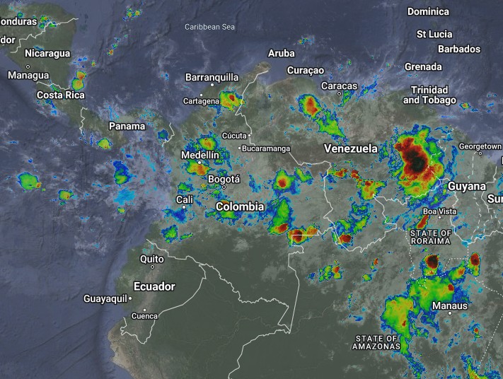 El ramal Pacífico de la Zona de Confluencia Intertropical en interacción con una Vaguada, un Sistema de Baja Presión, el ingreso de humedad por el Oriente del país, así como procesos convectivos locales favorecen condiciones inestables, que generan lluvias ligeras a fuertes y algunas tormentas en sectores de los departamentos de Cesar, Bolívar, Sucre, Córdoba, Antioquia, Santander, Boyacá, Cundinamarca y Vaupés. Precipitaciones ocasionales y lluvias de menor intensidad en los departamentos de Chocó, Valle del Cauca, Cauca, Meta, Guaviare, Guainía, Vichada, Arauca y Casanare.