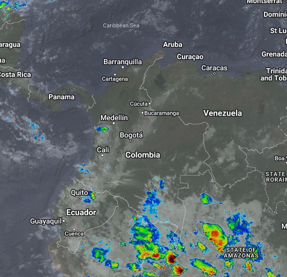 El ramal Pacífico de la Zona de Confluencia Intertropical en interacción con una Vaguada, un Sistema de Baja Presión, el ingreso de humedad por el Suroriente del país y procesos convectivos locales, favorecen condiciones inestables que generan lluvias ligeras a moderadas y algunas tormentas en sectores de los departamentos de Chocó, Valle del Cauca, Cauca, Nariño, Putumayo, Caquetá, Tolima, Vaupés y Amazonas. Precipitaciones ocasionales y lluvias de menor intensidad en los departamentos de Atlántico, Magdalena, Córdoba, Antioquia, Los Santanderes, Boyacá, Cundinamarca y Casanare.