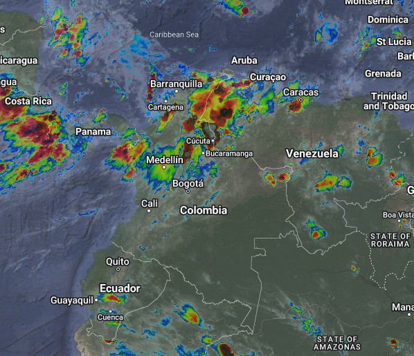 El ramal Pacífico de la Zona de Confluencia Intertropical en interacción con una Vaguada, el ingreso de humedad por el Oriente del país y procesos convectivos locales, favorecen condiciones inestables que generan lluvias sectorizadas a fuertes y algunas tormentas en sectores de los departamentos de Atlántico, Magdalena, Cesar, Sucre, Córdoba, Bolívar, Norte de Santander, Antioquia, Chocó, Valle del Cauca, Cauca, Nariño, Putumayo, Caquetá, Guaviare, Meta y Vaupés. Precipitaciones ocasionales y lluvias de menor intensidad en los departamentos de la Guajira, Eje Cafetero, Tolima, Huila, Cundinamarca, Boyacá, Santander, Arauca y Casanare.