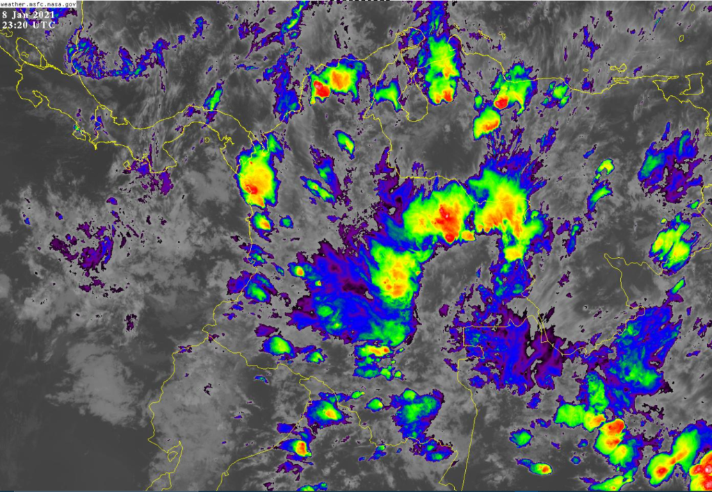 La interacción de la Zona de Confluencia Intertropical con una vaguada en el Pacifico, genera inestabilidad atmosférica ocasionando lluvias de variada intensidad, en los departamentos de Chocó, Antioquia, Valle, Cauca y Nariño. El ingreso de humedad por el sur y oriente del país favorece el incremento de nubosidad favoreciendo la presencia de lluvias y tormentas en Putumayo, Caquetá, Guaviare, Meta, Casanare, Arauca y Vichada. Procesos convectivos locales producen lluvias de menor intensidad en Sucre, Bolívar, Magdalena, Santander, Cundinamarca, Boyacá, Huila, Eje Cafetero y Tolima. Se encuentra activa una corriente en chorro en superficie en el mar caribe con vientos entre 20 y 25 nudos (35 a 45 km/h).