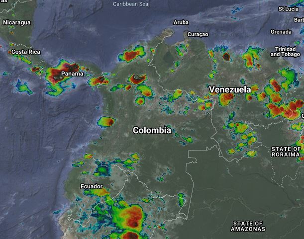 La interacción de la Zona de Confluencia Intertropical con una Vaguada en el pacífico y el paso de una Onda Tropical del Este, generan condiciones inestables en gran parte del país. Para esta noche se prevén lluvias moderadas a muy fuertes en sectores de los departamentos de Magdalena, Bolívar, Sucre, Córdoba, Antioquia, Santanderes, Vichada, Chocó, Valle del Cauca, Guainía, Vaupés y Amazonas. Precipitaciones ocasionales y lluvias de menor intensidad en Nariño, Cauca, Putumayo, Huila, Tolima, Eje Cafetero, Cundinamarca, Boyacá, Arauca, Casanare, Meta y Guaviare.