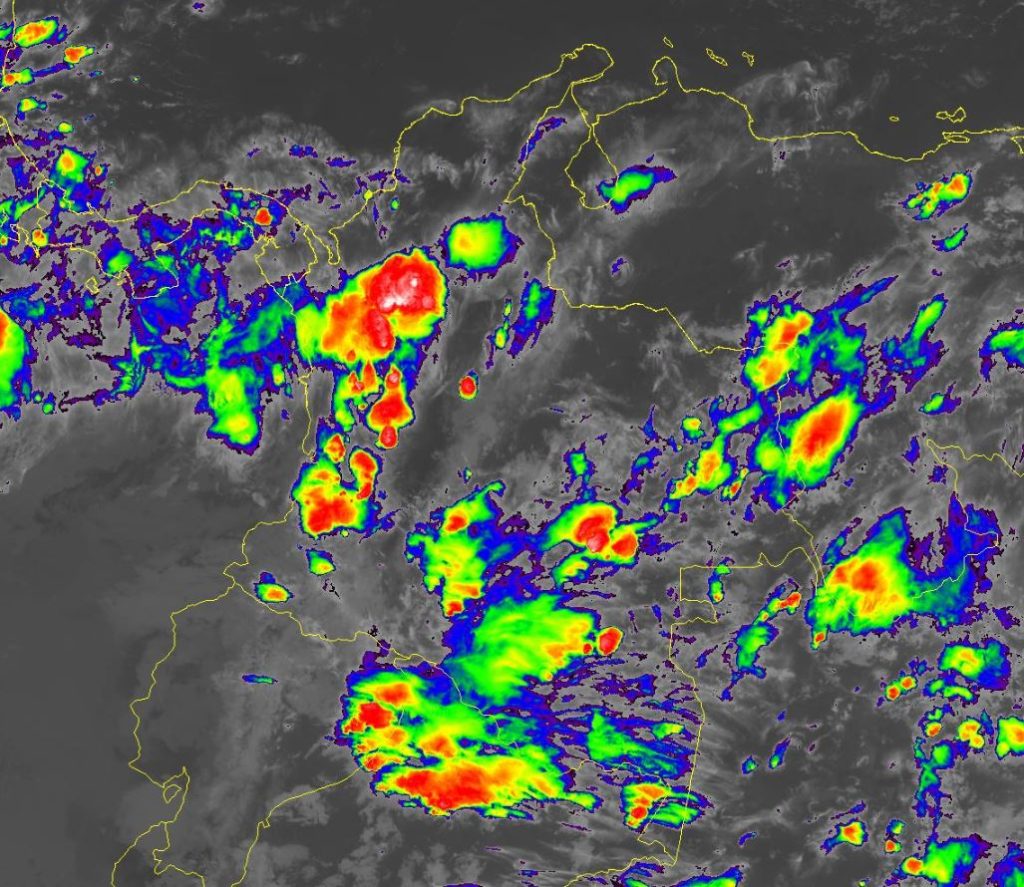 Inestabilidad atmosférica en el occidente, sur y suroriente del territorio nacional. Lluvias moderadas a fuertes y tormentas en Nariño, Cauca, Valle del Cauca, Risaralda, Quindío, Caldas, Chocó, Antioquia, Santander, Vichada, Guainía, Meta, Guaviare, Vaupés, Amazonas y Caquetá.