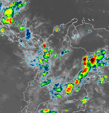 El ramal Pacífico de la Zona de Confluencia Intertropical en interacción con una Vaguada, un Sistema de Baja Presión, así como procesos convectivos locales favorecen condiciones inestables, que generan lluvias ligeras a moderadas y algunas tormentas en sectores de los departamentos de Antioquia, Chocó, Valle del Cauca, Cauca, Vichada, Vaupés, Guainía, Amazonas, Putumayo y Caquetá. Precipitaciones ocasionales y lluvias de menor intensidad en los departamentos de Córdoba, Nariño, Cundinamarca, Santanderes, Magdalena, Meta, Tolima y Huila.