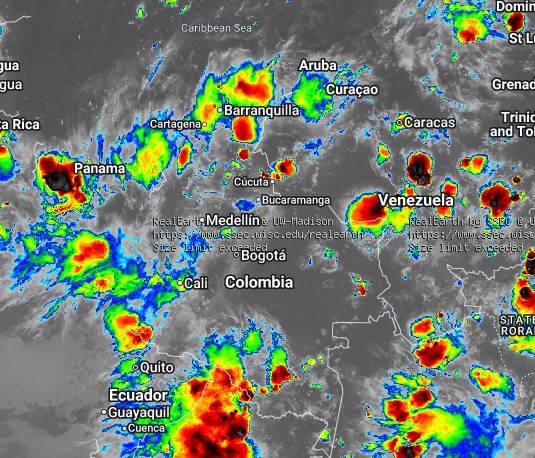 El ramal Pacífico de la Zona de Confluencia Intertropical en interacción con una Vaguada, el paso de una Onda Tropical del Este, así como procesos convectivos locales favorecen condiciones inestables, que generan lluvias ligeras a moderadas y algunas tormentas en sectores de los departamentos de vichada, Arauca, Casanare, guajira, Cesar, Magdalena, Bolívar, Sucre, Córdoba, Chocó, Valle del Cauca, Cauca, Nariño, Vaupés, Guaviare, Guainía. Precipitaciones ocasionales y lluvias de menor intensidad en los departamentos de Boyacá, Cundinamarca, Meta, Tolima, Huila, Caquetá, Putumayo y Amazonas.