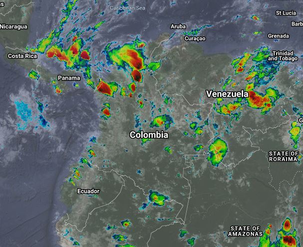 La interacción de la Zona de Confluencia Intertropical con una vaguada en el Pacifico y el paso de una onda tropical genera inestabilidad atmosférica ocasionando lluvias de variada intensidad, en los departamentos de Chocó, Antioquia, Valle, Cauca, Nariño, Sucre, Bolívar y Magdalena. Procesos convectivos locales ocasionan lluvias ligeras a moderadas en sectores de los departamentos de Casanare, Arauca, Vichada, Cundinamarca, Boyacá, Huila, Eje Cafetero y Tolima. Se encuentra activa una corriente en chorro en superficie en el mar caribe con vientos entre 20 y 25 nudos (35 a 45 km/h).