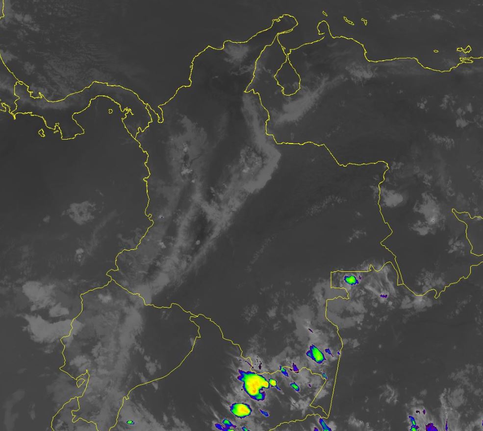 El ingreso de humedad desde el suroriente genera unas lluvias moderadas en Amazonas, Caquetá y Vaupés. Condiciones de tiempo seco en la mayor parte del territorio nacional. Vientos fuertes para la región Caribe con intensidades entre 20 y 35 nudos (40 a 70 km/h) debido a corrientes en chorro en superficie.