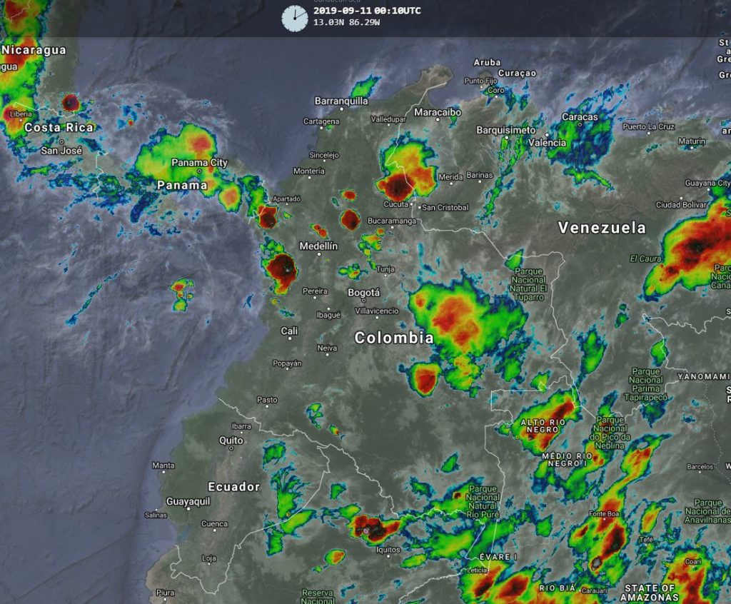 Condiciones inestables en algunos sectores del territorio nacional, debido al paso de Ondas Tropicales del Este, que en interacción con la zona de confluencia intertropical, una vaguada y un sistema de baja presión, generan humedad y nubosidad produciendo lluvias de variada intensidad. Para esta noche se prevén lluvias moderadas a fuertes en los departamentos de Norte de Santander, Cesar, Bolívar, Córdoba, Chocó, Antioquia, Valle, Vaupés, Guaviare, Casanare y Meta. Lluvias de menor intensidad en Santander, Boyacá, Vichada y Guainía.