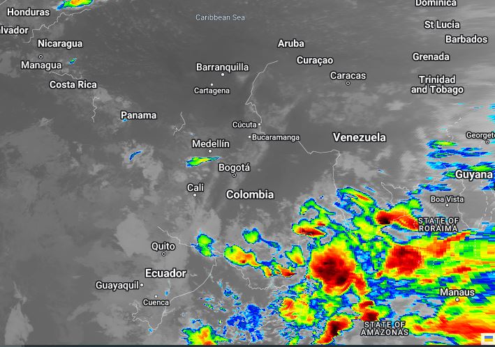 El ramal Pacífico de la Zona de Confluencia Intertropical en interacción con una Vaguada, un Sistema de Baja Presión, el ingreso de humedad por el Suroriente del país y procesos convectivos locales, favorecen condiciones inestables que generan lluvias ligeras a moderadas y algunas tormentas en sectores de los departamentos de Chocó, Putumayo, Caquetá, Amazonas, Vaupés, Guaviare y Guainía. Precipitaciones ocasionales y lluvias de menor intensidad en los departamentos de Santander, Boyacá, Eje Cafetero, Tolima, Huila, Valle del Cauca, Cauca, Nariño.