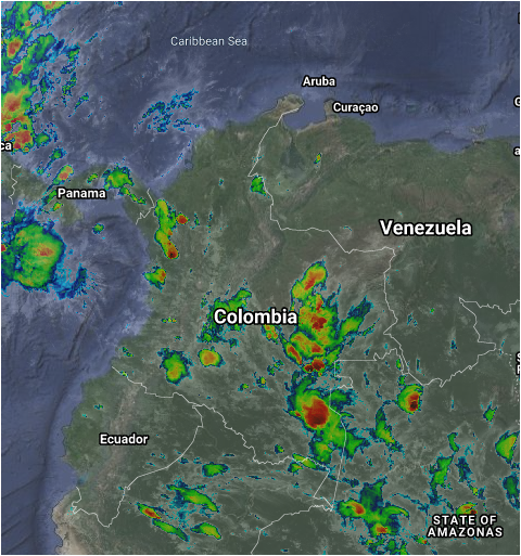 La interacción de la Zona de Confluencia Intertropical con una vaguada en el Pacifico y el ingreso de humedad desde el oriente, continúan generando inestabilidad atmosférica en gran parte del territorio nacional. Lluvias de variada intensidad y tormentas en Chocó, Antioquia, Eje Cafetero, Valle del Cauca, Cauca, Nariño, Caquetá, Huila, Tolima, Tolima, Cundinamarca, Meta, Vichada, Guainía, Guaviare, Vaupés y Amazonas. Una corriente en Chorro en Superficie en el mar Caribe genera vientos fuertes con intensidades de entre 20 y 35 nudos (36 a 63 km/h).