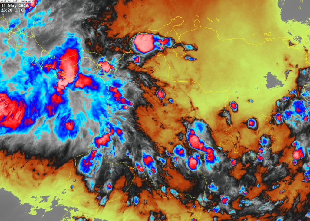 Condiciones inestables en el occidente y centro del país debido a la interacción de la zona de confluencia intertropical con una vaguada en el pacífico, así como al ingreso de humedad por el oriente del país, lo cual genera nubosidad favoreciendo que se presenten lluvias moderadas y fuertes, algunas acompañadas de actividad eléctrica, en sectores de los departamentos de Sucre, Bolívar, Atlántico, Magdalena, cesar, Chocó, Antioquia, Valle, Cauca, Nariño, Vaupés, Guainía, Guaviare, Caquetá y Putumayo. Precipitaciones ocasionales y lluvias de menor intensidad en Eje Cafetero, Casanare, Boyacá y Santander.