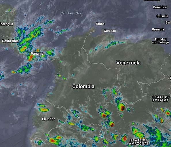 La interacción de la Zona de Confluencia Intertropical con una vaguada en el Pacifico y el ingreso de humedad desde el suroriente, continúan generando inestabilidad atmosférica, lluvias moderadas y algunas tormentas en Chocó, Antioquia, Valle del Cauca, Cauca, Nariño Guainía, Guaviare, Vaupés y Amazonas. Procesos convectivos locales generan precipitaciones ocasionales y lluvias sectorizadas en Eje Cafetero, Caquetá, Huila, Tolima, Cundinamarca y los Santanderes. Una corriente en chorro en superficie ocasiona predominio de tiempo seco en Arauca, Meta, Casanare y Vichada.