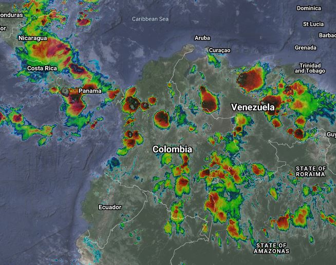 El ramal pacifico de la Zona de Confluencia Intertropical en interacción con una vaguada, el paso de Ondas Tropicales del Este y procesos convectivos locales favorecen condiciones inestables con probabilidad de lluvias de variada intensidad y algunas tormentas en sectores de los departamentos de Córdoba, Sucre, Bolívar, Cesar, Norte de Santander, Santander, Cundinamarca, Boyacá, Eje Cafetero, Antioquia, Chocó, Valle del Cauca, Cauca, Putumayo, Caquetá, Meta, Arauca, Casanare, Vichada, Guainía, Guaviare, Vaupés. y Amazonas. Precipitaciones ocasionales y lluvias de menor intensidad en Magdalena, Tolima, Huila, y Nariño.