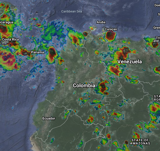 Condiciones inestables en el Oriente, Norte y noroccidente del país. Lluvias moderadas a fuertes y tormentas en sectores de los departamentos de Amazonas, Caquetá, Vaupés, Guaviare, Guainía, Vichada, Arauca, La Guajira, Cesar, Magdalena, Bolívar, Antioquia, chocó y el Eje Cafetero. Precipitaciones de menor intensidad en Los Santanderes, Boyacá, Cundinamarca, Tolima, Huila, Cauca y Valle del Cauca.