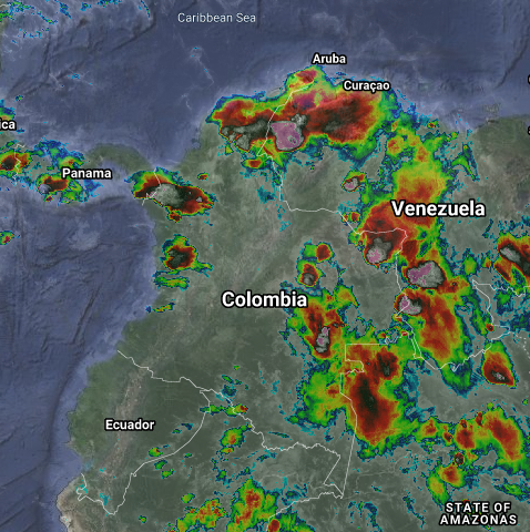 El ramal pacifico de la Zona de Confluencia Intertropical en interacción con una Vaguada, así como el ingreso de humedad genera condiciones inestables en el oriente, centro y occidente del país, lluvias de variada intensidad, algunas acompañadas de actividad eléctrica, especialmente en sectores de Arauca, Vichada, Meta, Casanare, Guainía, Vaupés, Amazonas, Caquetá, La Guajira, Magdalena, Cesar, Bolívar, Norte de Santander, Santander, Córdoba, Antioquia, Chocó, Eje Cafetero y el Valle del Cauca. Precipitaciones de menor intensidad en Tolima.
