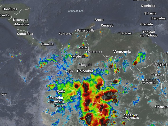 El ramal Pacífico de la Zona de Confluencia Intertropical en interacción con una Vaguada, un Sistema de Baja Presión, JET (viento en chorro de nivel bajo), así como procesos convectivos locales favorecen condiciones inestables, que generan lluvias de ligeras a fuertes y algunas tormentas en sectores de los departamentos de Cordoba, Sucre, Bolivar, Santander, Boyacá, Choco, Cauca, Nariño, Putumayo, Vaupés, Vichada, Amazonas y Guainía. Precipitaciones ocasionales y lluvias de menor intensidad en los departamentos de Antioquia, Arauca, Atlántico, Caldas, Caquetá, Casanare, Cesar, Cundinamarca, Guaviare, Huila, La Guajira, Magdalena, Meta, Norte de Santander, Quindío, Risaralda, Tolima y Valle del Cauca.