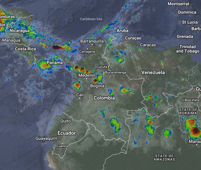 El ramal Pacífico de la Zona de Confluencia Intertropical en interacción con una Vaguada, un Sistema de Baja Presión, el ingreso de humedad por el paso de una Onda Tropical del Este, así como procesos convectivos locales favorecen condiciones inestables, que generan lluvias ligeras a fuertes y algunas tormentas en sectores de los departamentos de Cesar, Santander, Boyacá, Cundinamarca, Tolima, Arauca, Casanare, Meta y Amazonas. Precipitaciones ocasionales y lluvias de menor intensidad en los departamentos de Córdoba, Sucre, Bolívar, Norte de Santander, Antioquia, Chocó, Valle del Cauca, Cauca, Nariño, Putumayo, Caquetá, Vichada y Guainía.