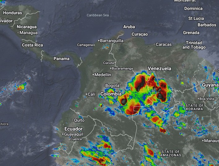 El ramal Pacífico de la Zona de Confluencia Intertropical en interacción con una Vaguada, un Sistema de Baja Presión, con procesos convectivos locales favorecen condiciones inestables, que generan lluvias sectorizadas a moderadas y algunas tormentas en sectores de los departamentos de Amazonas, Putumayo, Nariño, Huila, Choco, Tolima, Guaviare, Caquetá, Vichada, Arauca, Casanare y Santander. Precipitaciones ocasionales y lluvias de menor intensidad en los departamentos de Antioquia, Atlántico, Bolívar, Boyacá, Caldas, Cauca, Cesar, Córdoba, Cundinamarca, Guainía, La Guajira, Magdalena, Meta, Norte de Santander, Quindío, Risaralda, Sucre, Valle del Cauca y Vaupés.
