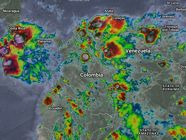 La interacción del ramal pacifico de la Zona de Confluencia Intertropical con una Vaguada y el ingreso de humedad por el oriente del país generan lluvias de variada intensidad, algunas acompañadas de actividad eléctrica, en varios sectores afectando los departamentos de Nariño, Cauca, Valle del Cauca, Chocó, Córdoba, Sucre, Bolívar, Atlántico, Magdalena, Cesar, Guajira, Santander, Norte de Santander, Antioquia, Cundinamarca, Boyacá, Arauca, Casanare, Meta, Guaviare, Vaupés, Amazonas, Caquetá y Putumayo. Precipitaciones ocasionales y lluvias de menor intensidad en el Eje Cafetero, Tolima, Huila, Guainía y Vichada.