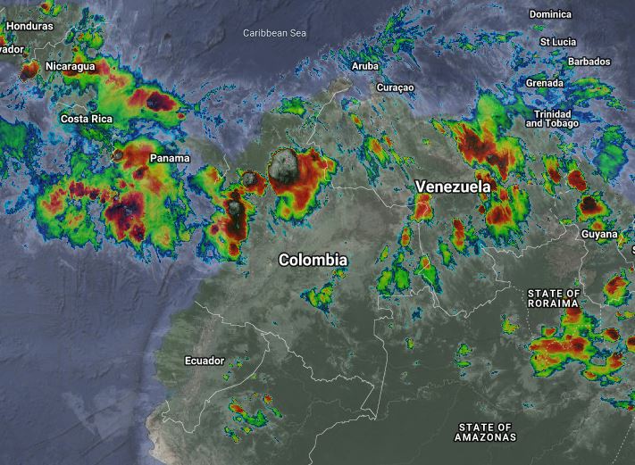 Condiciones inestables en algunos sectores del territorio nacional producto del paso de Ondas Tropicales del Este en interacción con la zona de confluencia intertropical y un sistema de baja presión, lo cual genera humedad y nubosidad produciendo lluvias de variada intensidad que afectan algunas zonas del país. Para esta noche se prevén lluvias moderadas a fuertes y algunas tormentas en los departamentos de Antioquia, Chocó, Córdoba, Sucre, Bolívar, Los Santanderes, Valle del Cauca y Guainía. Lluvias de menor intensidad en el Eje Cafetero, Magdalena, Cesar, Boyacá, Cundinamarca, Nariño, Cauca, Meta, Vichada, Vaupés, Caquetá y Putumayo.