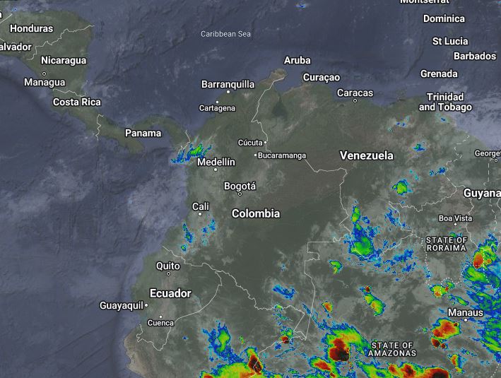 El ramal Pacífico de la Zona de Confluencia Intertropical en interacción con una Vaguada, un Sistema de Baja Presión, el ingreso de humedad por el Suroriente del país y procesos convectivos locales, favorecen condiciones inestables que generan lluvias ligeras a moderadas y algunas tormentas en sectores de los departamentos de Antioquia, Chocó, Valle del Cauca, Cauca y Nariño. Precipitaciones ocasionales y lluvias de menor intensidad en los departamentos de Bolívar, Córdoba, Santander, Boyacá, Cundinamarca, Eje Cafetero, Tolima, Huila, Putumayo y Amazonas.