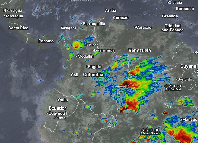 El ramal Pacífico de la Zona de Confluencia Intertropical en interacción con una Vaguada, un Sistema de Baja Presión, así como procesos convectivos locales favorecen condiciones inestables, que generan lluvias de ligeras a moderadas y algunas tormentas en sectores de los departamentos de Córdoba Antioquia, Choco, Valle del Cauca, Cauca, Nariño, Putumayo, Amazonas, Caquetá, Guainía, Vichada, Arauca, Tolima, Eje Cafetero, Boyacá y Santander. Precipitaciones ocasionales y lluvias de menor intensidad en los departamentos de Atlántico, Bolívar, Cesar, Cundinamarca, Guaviare, Huila, La Guajira, Magdalena, Meta, Norte de Santander, Sucre y Vaupés.