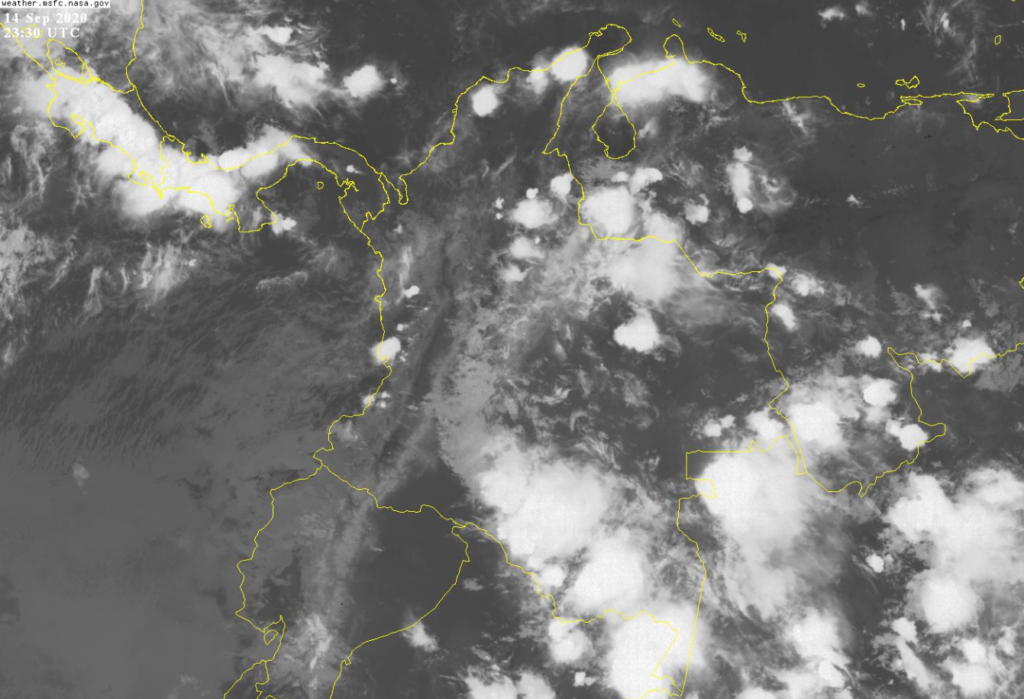 El ingreso de humedad desde el oriente y sur del país genera condiciones inestables gran parte del territorio nacional. Para esta noche se prevén lluvias moderadas a fuertes, algunas acompañadas de actividad eléctrica, en sectores de los departamentos de Guajira, cesar, Magdalena, Bolívar, Norte de Santander, Santander, Vichada, Arauca, Casanare, Meta, Guainía, Vaupés, Amazonas, Caquetá, Putumayo y Guaviare. Precipitaciones de menor intensidad en Cauca, Valle del Cauca, Antioquia, Eje Cafetero, Cundinamarca y Boyacá.
