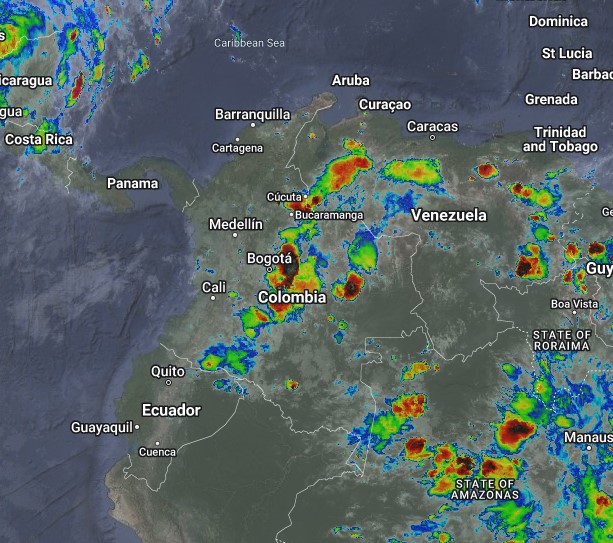 El ramal Pacífico de la Zona de Confluencia Intertropical en interacción con una Vaguada, el ingreso de humedad por el Suroriente del país y procesos convectivos locales, favorecen condiciones inestables que generan lluvias ligeras a fuertes y algunas tormentas en sectores de los departamentos de La Guajira, Cesar, Bolívar, Sucre, Santanderes, Antioquia, Chocó, Valle del Cauca, Cauca, Nariño, Tolima, Huila y Arauca. Precipitaciones ocasionales y lluvias de menor intensidad en los departamentos de Atlántico, Boyacá, Cundinamarca, Casanare, Meta y Caquetá.
