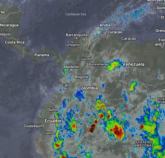 El ramal Pacífico de la Zona de Confluencia Intertropical en interacción con una Vaguada, un Sistema de Baja Presión, el ingreso de humedad por el Suroriente del país y procesos convectivos locales, favorecen condiciones inestables que generan lluvias ligeras a moderadas y algunas tormentas en sectores de los departamentos de, Santander, Arauca, Casanare, Meta, Guaviare, Caquetá, Putumayo, Vaupés y Amazonas. Precipitaciones ocasionales y lluvias de menor intensidad en los departamentos de Córdoba, Antioquia, Cundinamarca, Tolima y Huila.