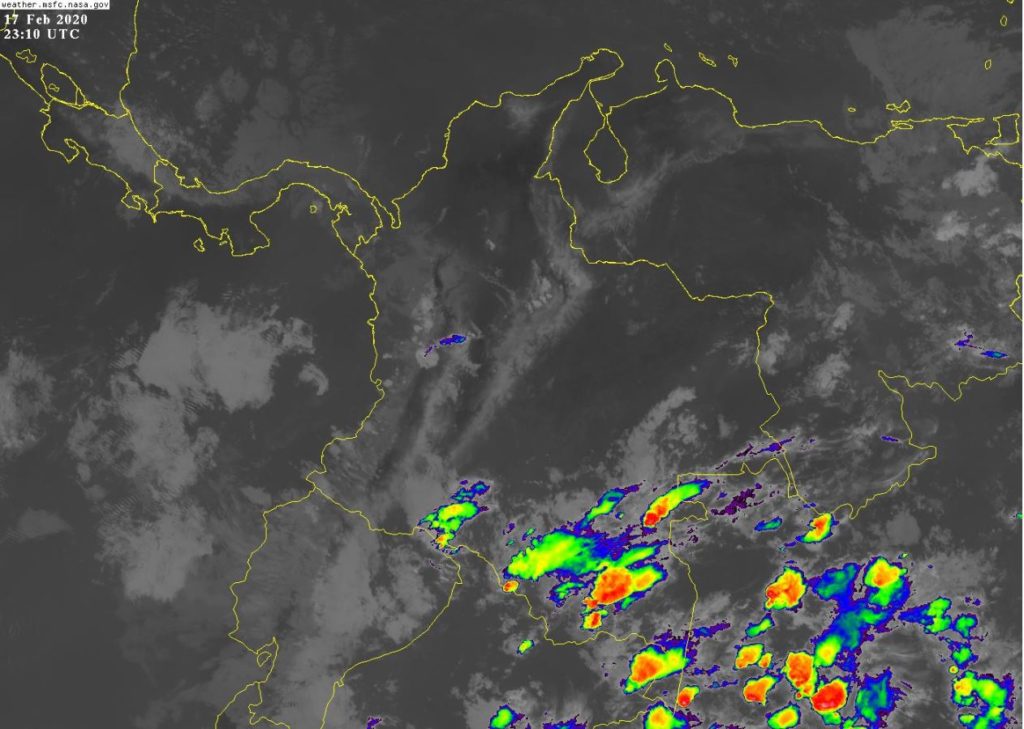 Predominio de tiempo seco en la mayor parte del territorio nacional. Condiciones inestables en algunos sectores del sur del país que podrían generar lluvias de variada intensidad y algunas tormentas en sectores de Putumayo, Caquetá, Amazonas, Vaupés, Guainía y Guaviare. Precipitaciones ocasionales en sectores de Chocó. Vientos fuertes en la costa caribe con intensidades de hasta 35 nudos (70 km/h).