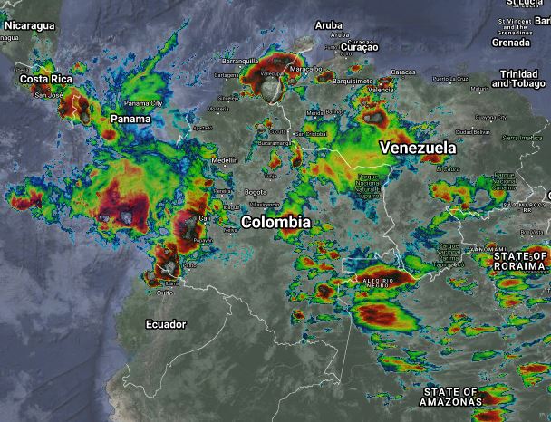 Condiciones inestables en gran parte del país debido a la interacción de la zona de confluencia intertropical con una vaguada en el pacífico, así como al ingreso de humedad por el oriente del país, lo cual genera nubosidad favoreciendo que se presenten lluvias de variada intensidad, algunas acompañadas de actividad eléctrica, en sectores de los departamentos de Córdoba, Sucre, Bolívar, Atlántico, Magdalena, Cesar, Chocó, Antioquia, Santanderes, Valle del Cauca, Cauca, Nariño, Tolima, Meta, Casanare, Arauca, Vichada, Guaviare, Guainía y Vaupés. Precipitaciones ocasionales y lluvias de menor intensidad en el Eje Cafetero, Huila, Cundinamarca, Boyacá, Caquetá, Putumayo y Amazonas.