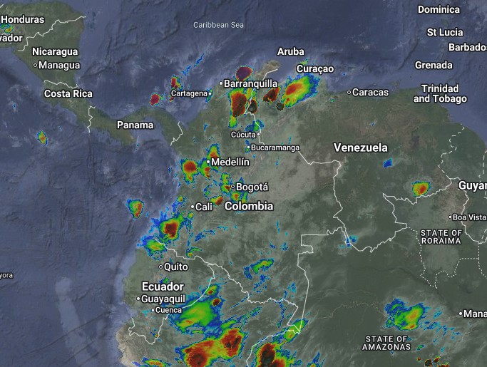 El ramal Pacífico de la Zona de Confluencia Intertropical en interacción con una Vaguada, un Sistema de Baja Presión, así como procesos convectivos locales favorecen condiciones inestables, que generan lluvias ligeras a fuertes y algunas tormentas en sectores de los departamentos de Sucre, Córdoba, Antioquia, Santander, Cauca, Nariño y Putumayo. Precipitaciones ocasionales y lluvias de menor intensidad en los departamentos de La Guajira, Magdalena, Norte de Santander, Boyacá, Cundinamarca, Tolima, Huila y Meta.
