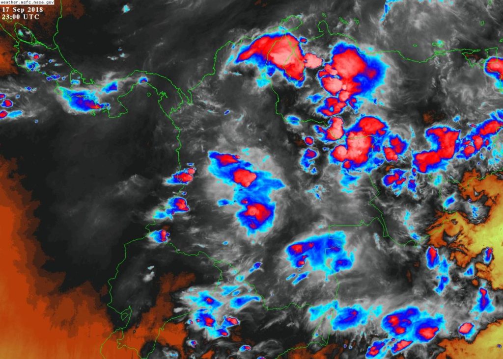 Condiciones inestables, humedad y precipitaciones de moderadas a fuertes acompañadas de actividad eléctrica en sectores de los departamentos de La Guajira, Magdalena, Cesar, Chocó, Valle del Cauca, Cauca, Nariño, Amazonas, Vaupés, Guaviare, Meta, Vichada, Casanare, Arauca y Cundinamarca. Precipitaciones de menor intensidad en sectores de Córdoba, Norte de Santander, Antioquia, Caldas, Risaralda, Tolima, Caquetá, Putumayo, Guainía, Boyacá, Huila y Santander.