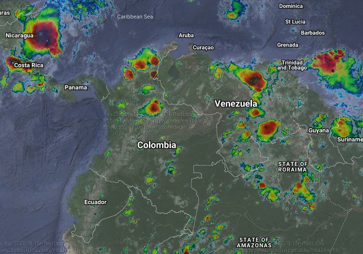 Condiciones inestables en algunos sectores del territorio nacional debido al paso de Ondas Tropicales del Este en interacción con la zona de confluencia intertropical, una vaguada y un sistema de baja presión, lo cual genera humedad y nubosidad produciendo lluvias de variada intensidad. Para esta noche se prevén lluvias sectorizadas a moderadas en los departamentos de Magdalena, Bolívar, Sucre, Córdoba, Chocó, Antioquia, Cauca, Nariño, Santanderes, Boyacá, Arauca, Casanare y Guainía.