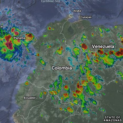 El ramal pacifico de la Zona de Confluencia Intertropical en interacción con una vaguada y el paso continuo de Ondas Tropicales del Este, generan condiciones inestables en gran parte del territorio nacional, lluvias de variada intensidad y algunas tormentas aisladas se prevén en sectores de los departamentos de Vichada, Arauca, Casanare, Meta, Guaviare, Guainía, Vaupés, Caquetá, Amazonas, Norte de Santander, Santander y Antioquia. Precipitaciones de menor intensidad en Boyacá, Cundinamarca, Eje Cafetero, Valle del Cauca, Cauca, Nariño y Putumayo.